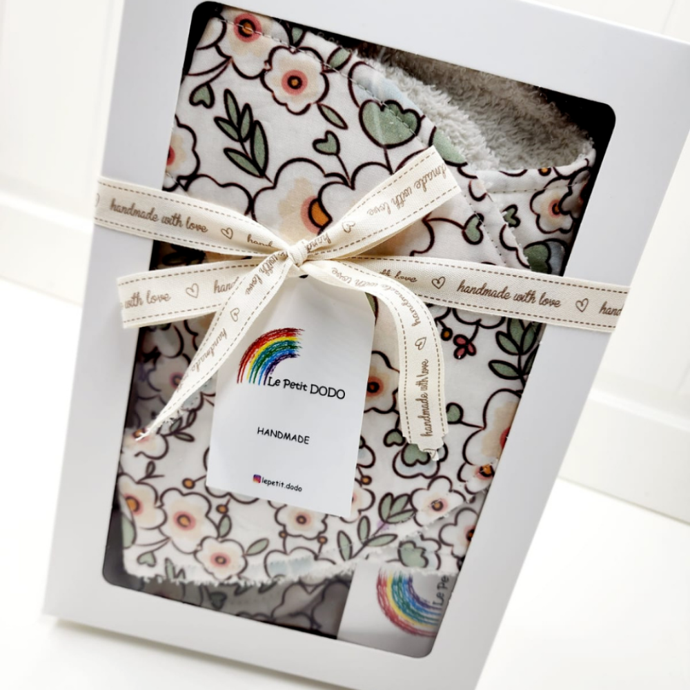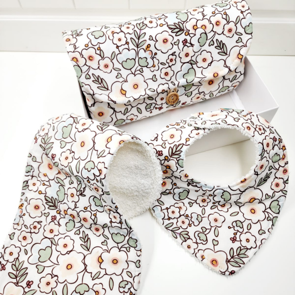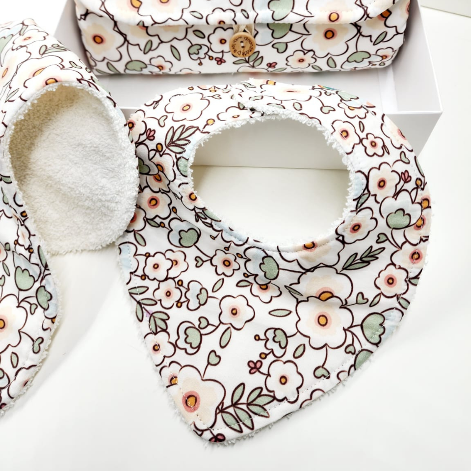 Bebeğinizin günlük bakım ihtiyaçları için tasarlanmış, %100 pamuklu kumaştan üretilen zarif ve pratik bakım setimiz şunları içerir: