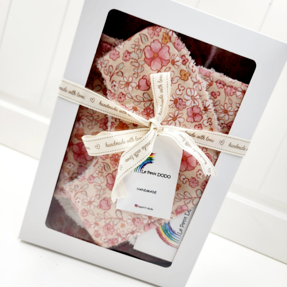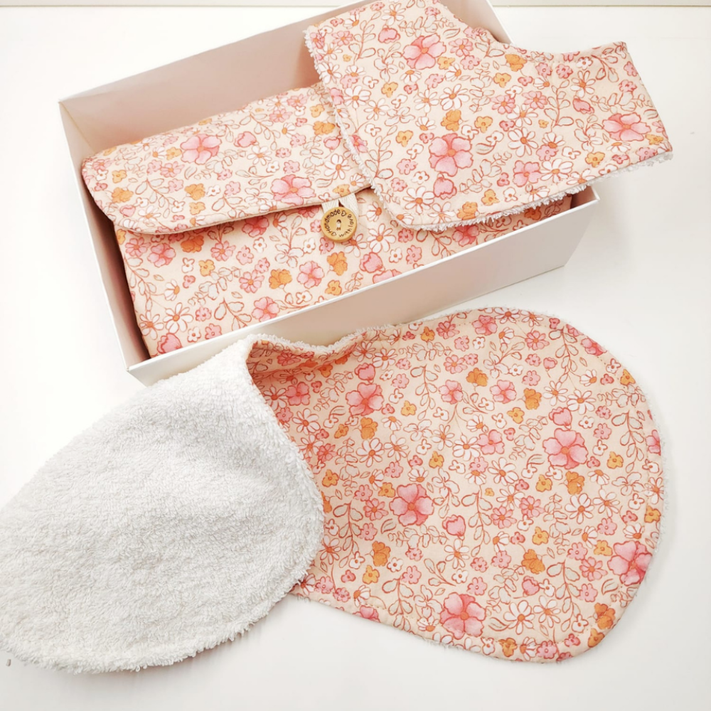Bebeğinizin günlük bakım ihtiyaçları için tasarlanmış, %100 pamuklu kumaştan üretilen zarif ve pratik bakım setimiz şunları içerir: