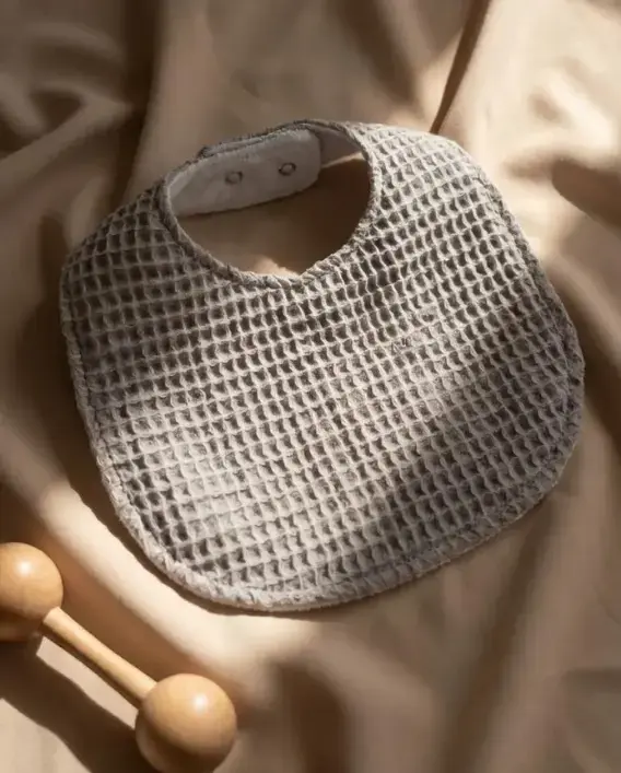 Le Petit Dodo Grey Su Geçirmez Mama Önlüğüğü; 0–24 ay bebekler için özel olarak tasarlanmış, %100 pamuk dış kumaşı ve sıvı geçirmez alt katmanıyla mama, püre ve içecek dökülmelerine karşı etkili bir koruma sunar.