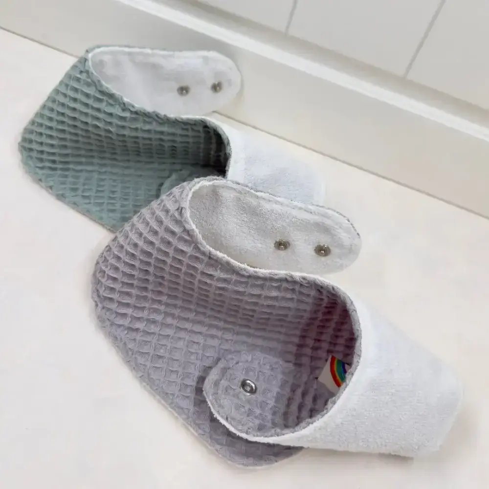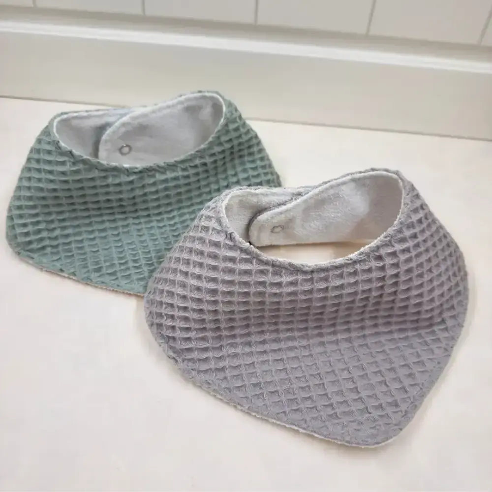 Le Petit Dodo 2'li Su Geçirmez Grey Green Bebek Salya Önlüğü, %100 pamuk dış yüzeyi ve sıvı geçirmez alt katmanıyla yoğun salya dönemlerinde bebeğinizin kıyafetlerinin kuru kalmasına yardımcı olur.