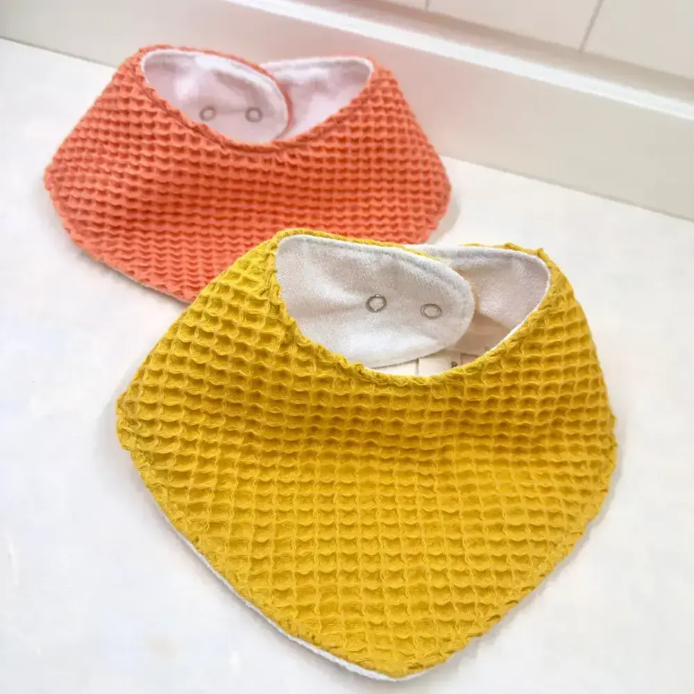 Le Petit Dodo 2'li Su Geçirmez Yellow Orange Bebek Salya Önlüğü, %100 pamuk dış yüzeyi ve sıvı geçirmez alt katmanıyla yoğun salya dönemlerinde bebeğinizin kıyafetlerinin kuru kalmasına yardımcı olur.