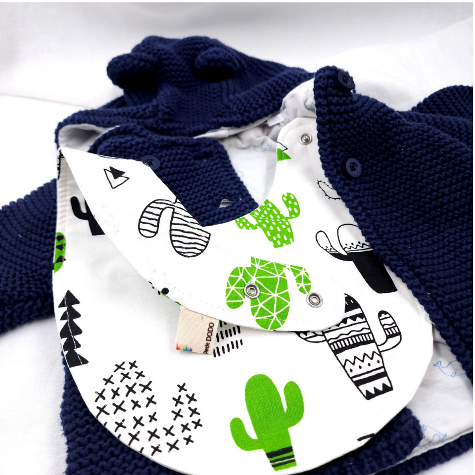 Le Petit Dodo Kaktüs Su Geçirmez Bebek Mama Önlüğü; 0-24 ay bebekler için özel olarak tasarlanmış, %100 pamuk dış kumaşı ve sıvı geçirmez alt katmanıyla yoğun salya dönemleri için ideal bir çözümdür.