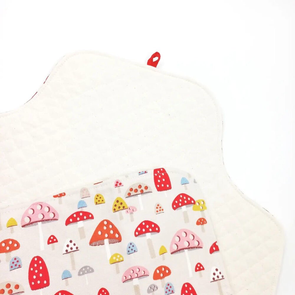 Bebeğimiz ve Annemiz için her ortamda kullanım rahatlığı ve hijyeni sağlayacak Le Petit Dodo Mushroom Su Geçirmez Bebek Alt Değiştirme Matı pamuklu dokuma kumaştan elde hazırlanmıştır. İç yüzeyi pamuk kapitone kumaştır. Bebeğinizin altını değiştirdikten sonra kolay taşınabilme özelliği ve hafifliğiyle çanta şeklinde katlayarak rahatlıkla taşıyabilirsiniz.
