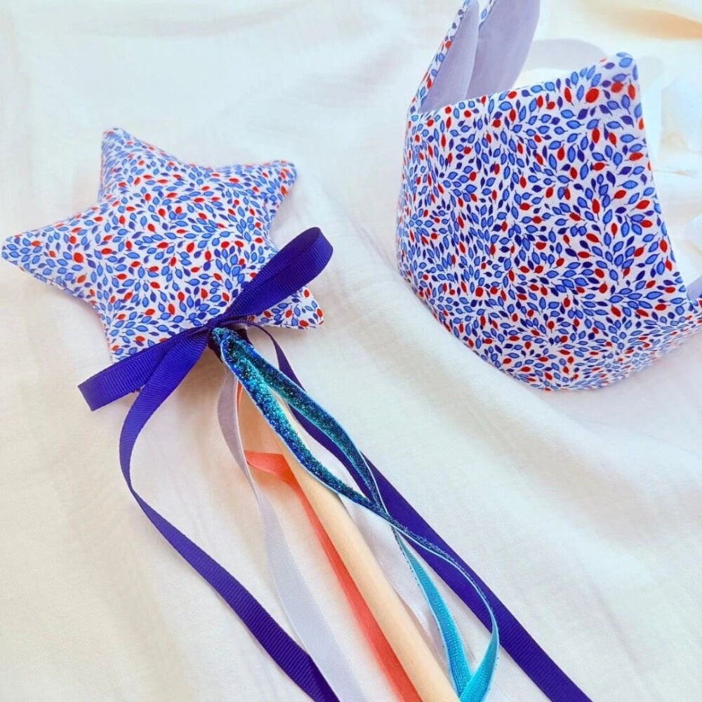 Bu 2’li set, tamamen el yapımı kumaş taç ve sihirli değnekten oluşuyor. Yumuşacık dokusu, zarif deseni ve pastel tonlardaki kurdele detayları ile minik prensesiniz hem şık hem de çok rahat hissedecek.